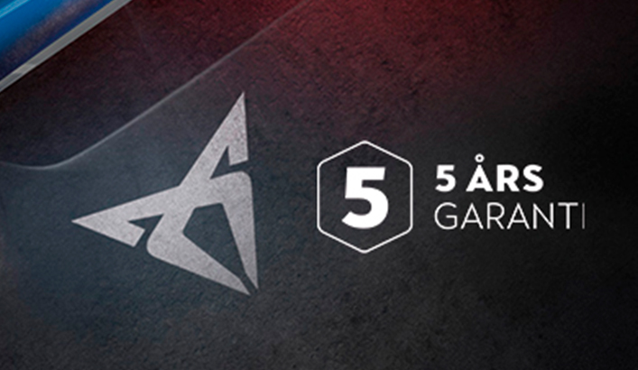 ***Samlet garanti i 5 år/150.000 km ved materiale- og fabrikationsfejl på batterielektriske biler (BEV) solgt af CUPRA Danmark til en af CUPRA Danmarks autoriserede forhandlere og udleveret af denne forhandler. De første 2 år dækkes af fabrikantens garanti, de næste 3 år dækkes af CUPRA Danmark igennem vores autoriserede servicepartnere i Danmark, Grønland og på Færøerne. Garantien omfatter ikke Plugin Hybrider (PHEV), digitale tjenester og services, indefra kommende gennemtæring, eftermonteret udstyr, naturligt slid eller sliddele, lak, højvoltsbatteri eller vejhjælp. Se øvrige vilkår og begrænsninger på cupra.dk/garanti eller her.